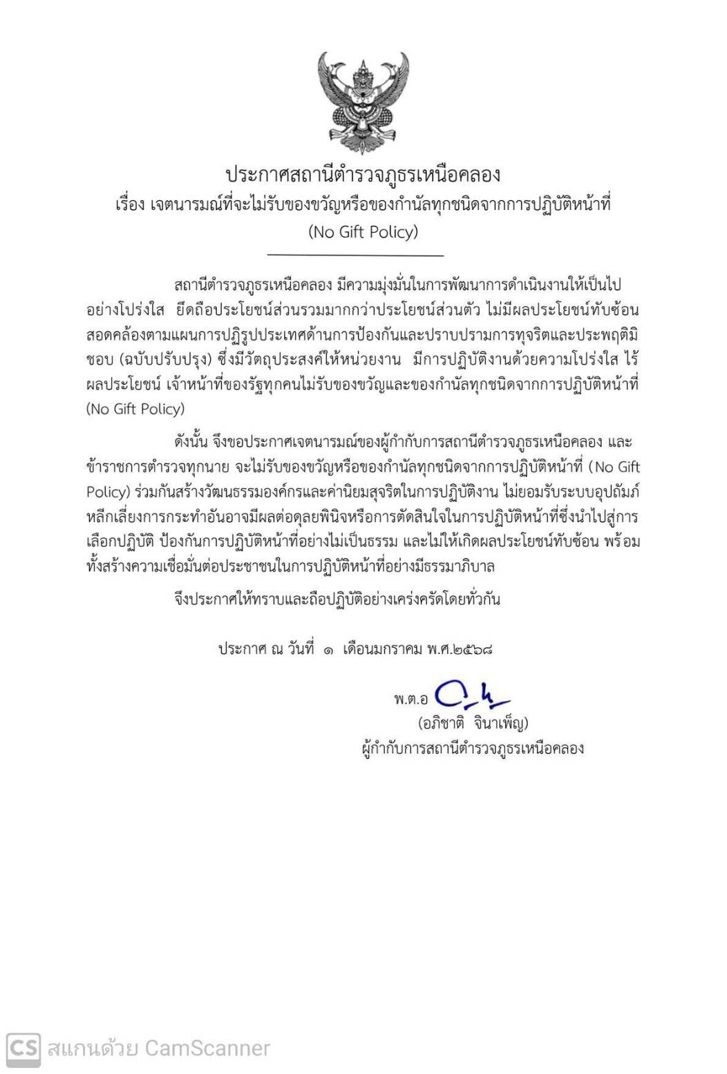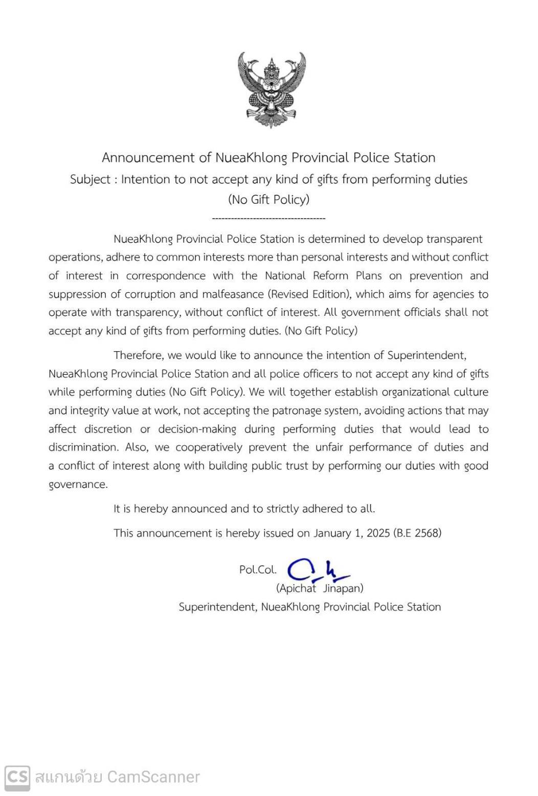 วันที่ 10 เมษายน 2568 พ.ต.อ.อภิชาติ จินาเพ็ญ ผกก.สภ.เหนือคลอง ได้ประชาสัมพันธ์นโยบายต่อต้านการทุจริต