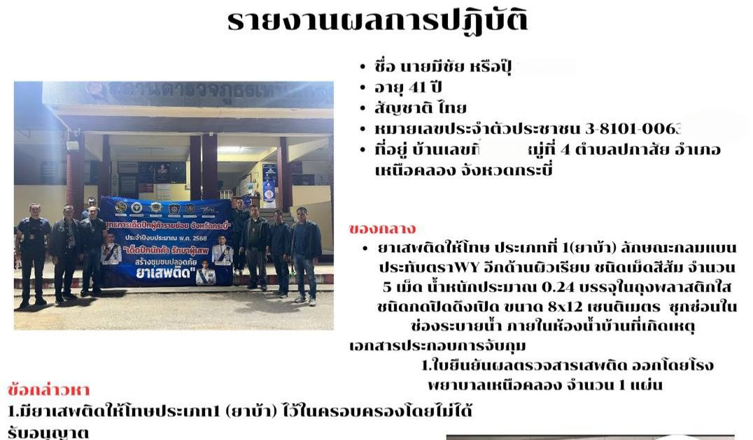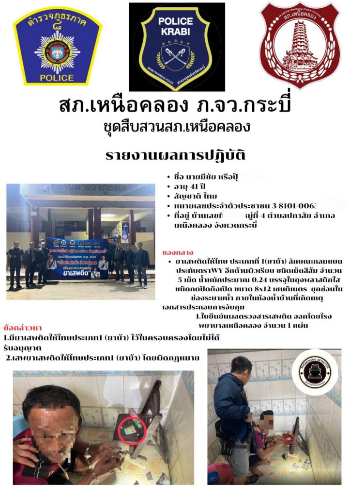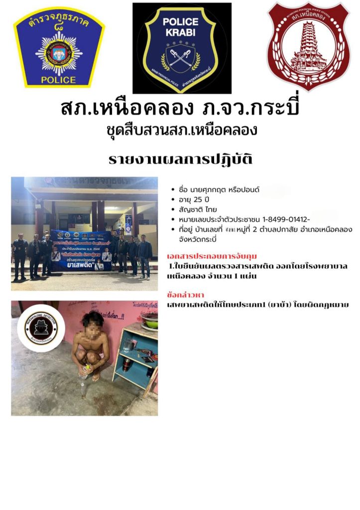 วันที่ 19 มี.ค.2568 ชุดสืบสวน สภ.เหนือคลอง จับกุมผู้ต้องหาพร้อมของกลางยาเสพติด จึงนำส่งพนักงานสอบสวนเพื่อดำเนินการตามกฎหมายต่อไป