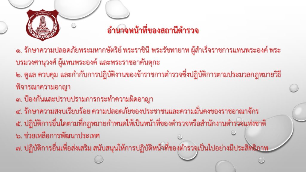อำนาจหน้าที่ของแต่ละตำแหน่งในสถานีตำรวจ